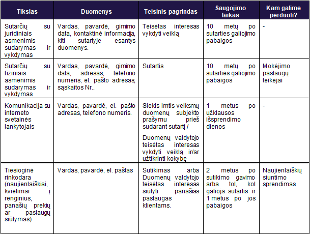 Su Duomenų valdytoju galite susisiekti šiais kontaktais: